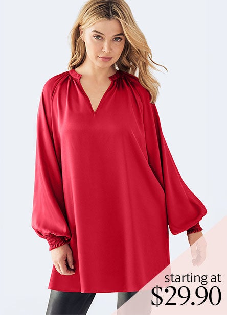 You’ve got the invites, we have the outfits! The holidays are an exciting time here at ellos. Bright poppy reds, velvet dresses, embellished blouses, lace-up pumps, must-have boots and booties, faux fur jackets, sleek faux leather leggings, super soft and chunky knits and more — Our pieces are perfect to mingle and make merry.