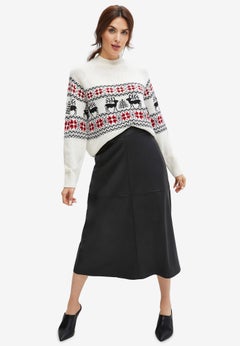 For a dependable, everyday skirt, try our Flared Elastic Waist Skirt. It features a mid-calf length, clean design, and a flared bottom. This trusty skirt will pair well with everything from button-front blouses to layered tanks and blazers. Finish the outfit with our Pointed Toe Kitten Heels.