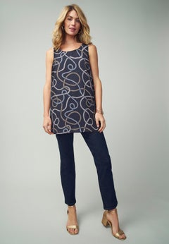 Use your tank tops as an anchor for your outfit. Wear one under a cardigan and pair it with dress pants and heels for work. Plan to wear a see-through top like our Sheer Button-Front Print Tunic that can only be worn with the help of a tank. They also work well under blazers and denim jackets.