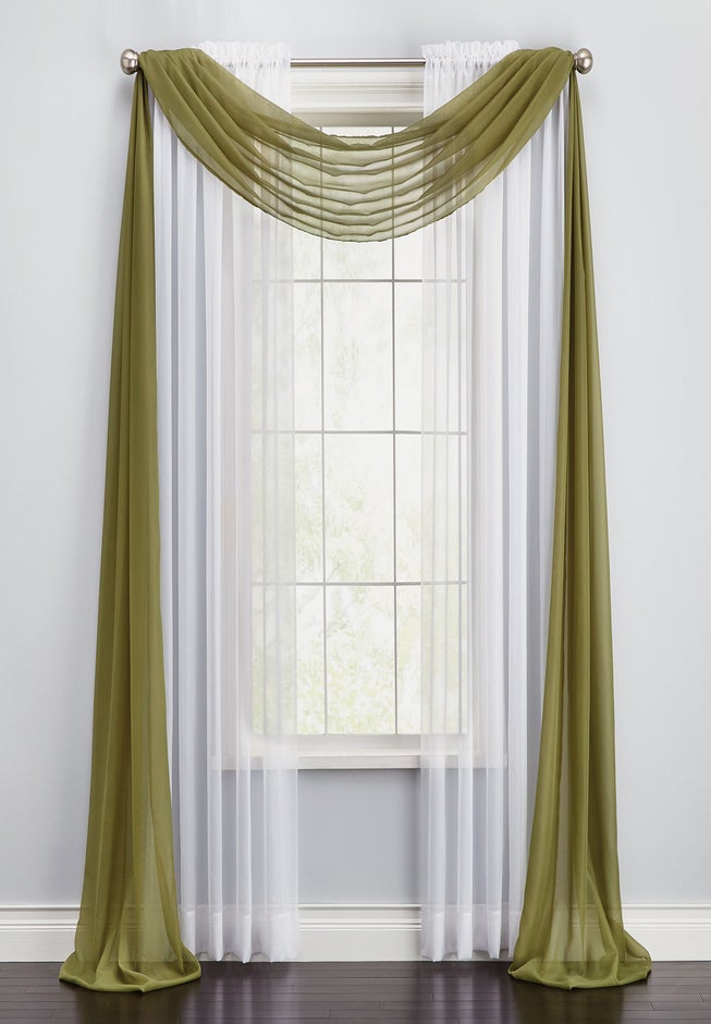 This sheer voile scarf is a low cost, colorful option to update any room. Colors can be layered for endless airy looks and mix-and-matched to coordinate with your existing decor.