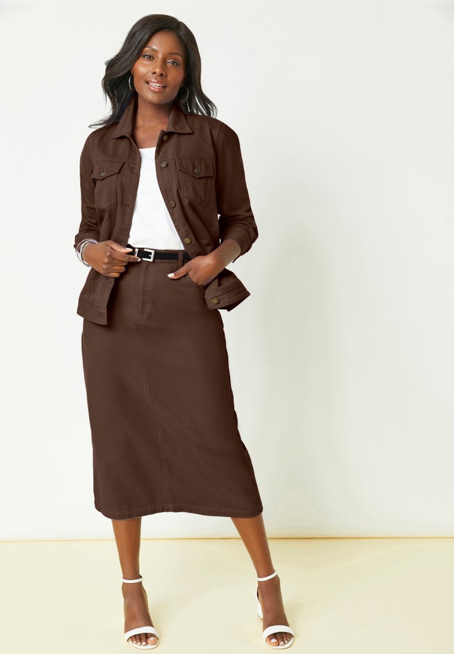 The Jessica London women's plus size Classic Cotton Collection Denim Jacket is an essential layer for everyday, complete with a classic shirt collar for everyday polish. Features a relaxed fit, classic seaming details and practical pockets.