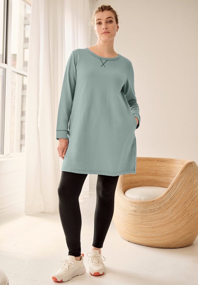 Item Number: 1008548Meet your official get-it-all-done tunic dress! It’s a versatile wardrobe essential made from our lightweight baby French terry with incredible softness and comfort. Perfect to wear solo or layer over our bestselling leggings. Complete the look with chic ballet flats.