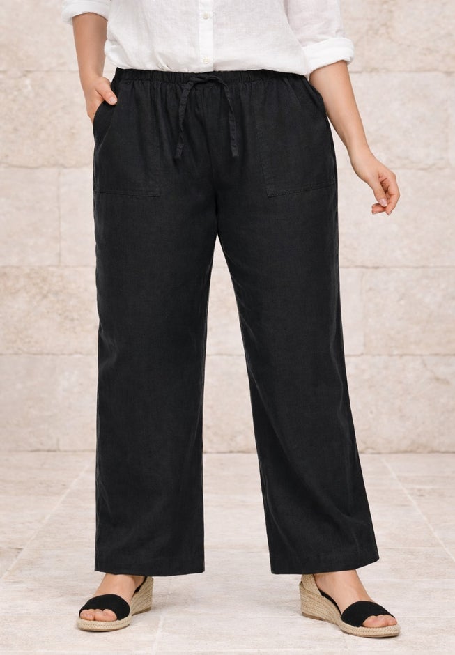Item Number: 1003659Made from our lightweight linen-blend fabric these pants are so easy to care for you'll never want to pack any other pants for your vacation. The elastic waist and drawstring ensure a comfortable and customizable fit. Pair them casually with a tee and sneakers or dress them up with a blouse and espadrilles.