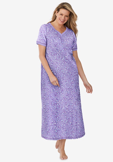 The perfect nightgown for relaxing in bed or on the couch, this sleep shirt has a Henley neckline so you can unbutton it for extra breathability. Short sleeves and a side-slit hem provide comfort and ease.
