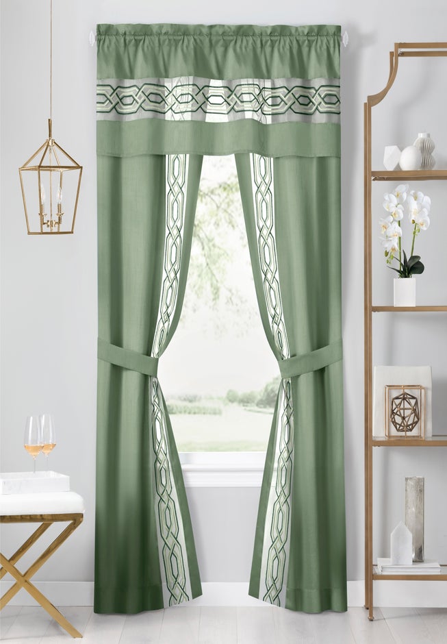 • Includes: 1 valance, 2 panels, and 2 matching tiebacks.