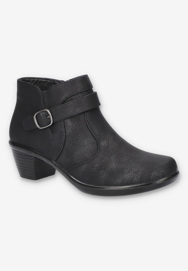Easy Street's stylish Raula bootie is designed with a fashionable, versatile upper accented with a gored buckle ornament. The lightweight, flexible Comfort Wave construction offers unrivaled Easy Motion by Easy Street comfort heel-to-toe foam insole, and stretch-for-fit features provide all-day comfort. Soon to be one of your everyday favorites. Inside zipper for easy entry.