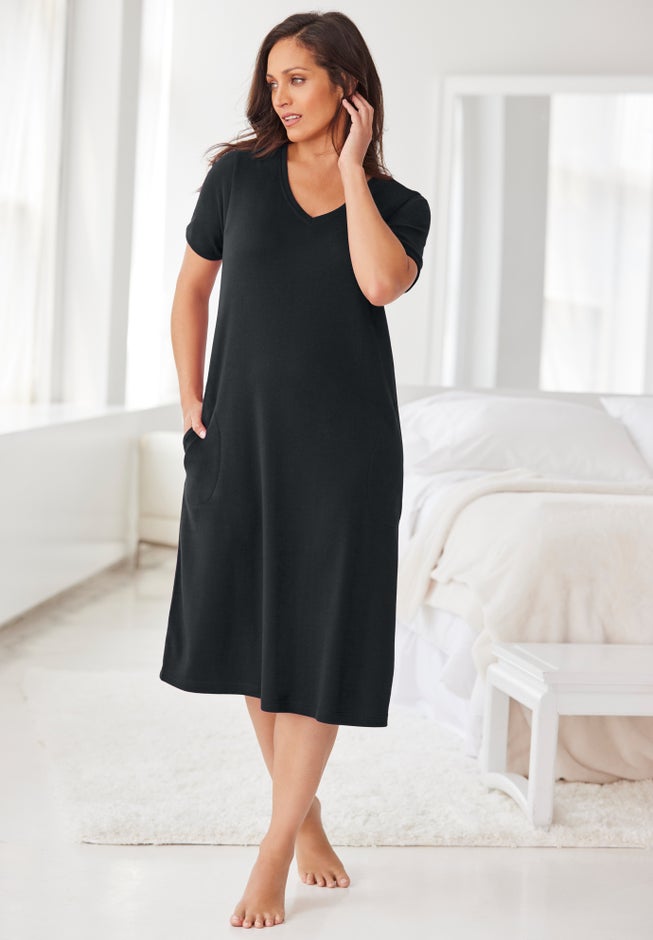 • Enjoy ultimate comfort with this delightful lounge dress featuring short sleeves and V-neck.