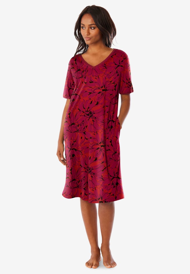 • Enjoy ultimate comfort with this delightful lounge dress featuring short sleeves and V-neck.