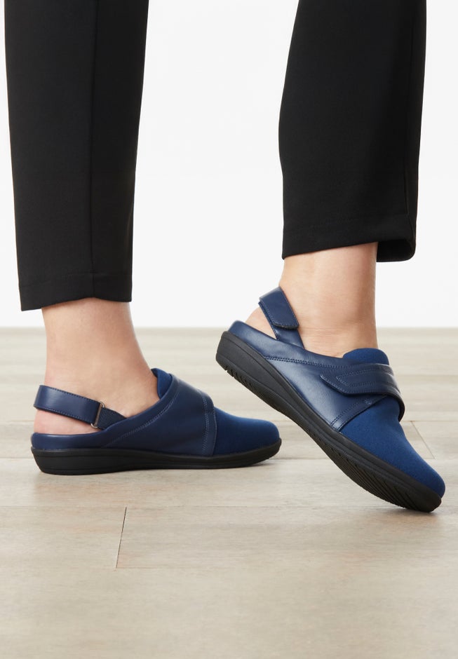With its adjustable slingback strap and removable orthotic insole, this pair brings style and comfort to every step of your day.