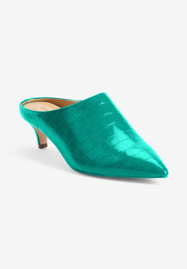 Leather-like mules available in full and half sizes 7-11, 12 M; 7-11, 12 W; 7-11, 12 WW