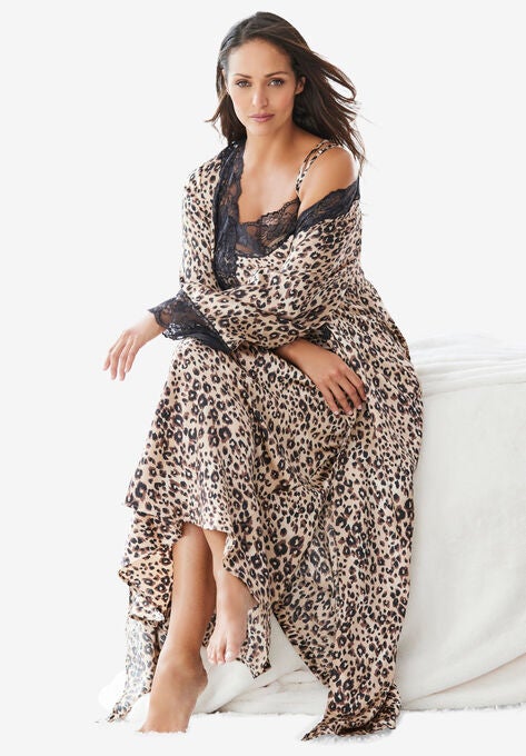 • Coordinating robe with long sleeves enhances the set with lace trim on the neck and cuffs for a refined look.