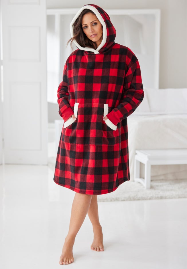 Snuggle up to The Snuggzy! When a hoodie meets a robe, you know you can't go wrong. You'll love the oversized fit and kangaroo pockets. It's lined with plush fleece and the outer is extra soft fleece. It's perfect to gift or get!