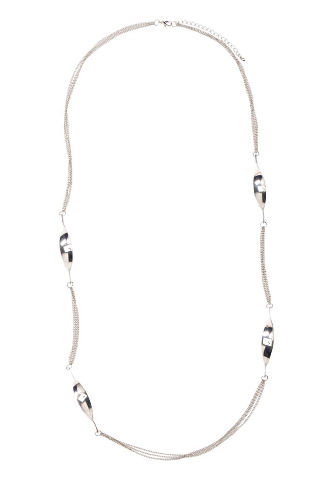 Style with a twist! Four twist accents spaced along a triple chain necklace.